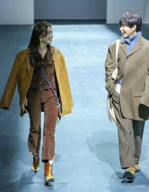 10月12日,江疏影现身上海时装周看秀,却被韩火火拉上T台走秀,当时,江疏影正坐在台下观看,韩火火作为设计师登场时正好路过她的位置,便把她也拉到了T台之上。